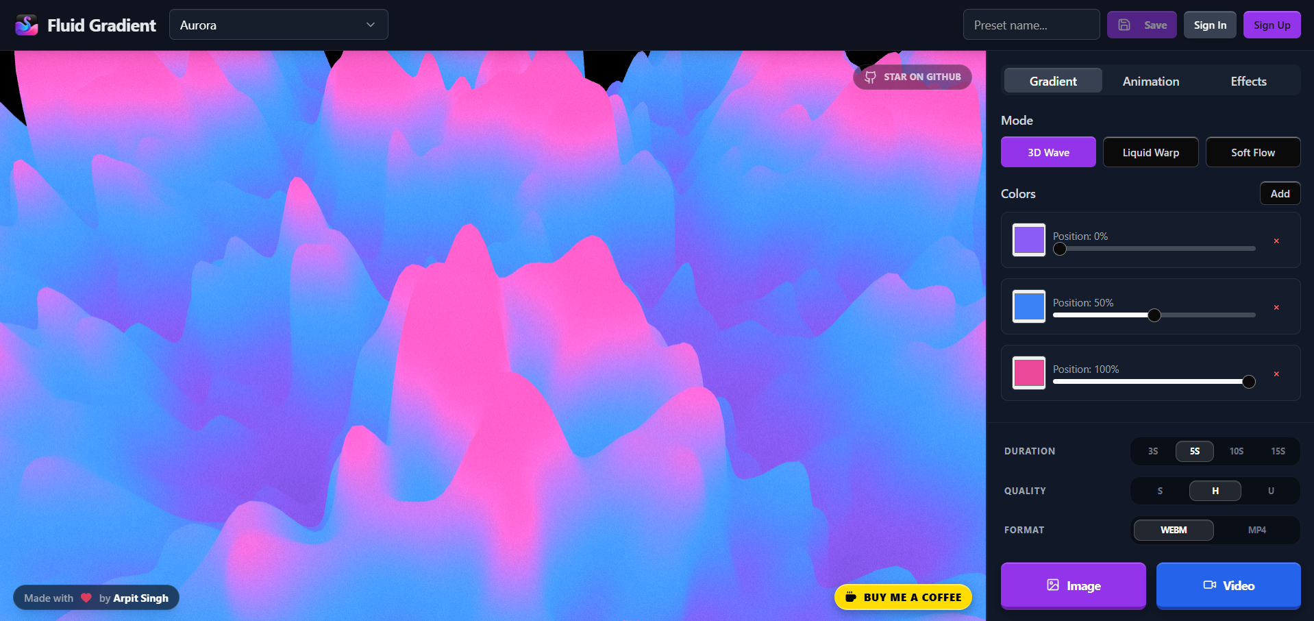 A 3D gradient generator with real-time preview.